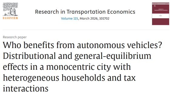 Diego Candia Abstract I study the welfare and distributional effects of autonomous vehicles (AVs) using a monocentric city model with heterogeneous households and endogenous labor supply. The formulation captures the fact... read more →
